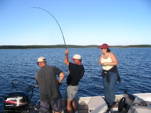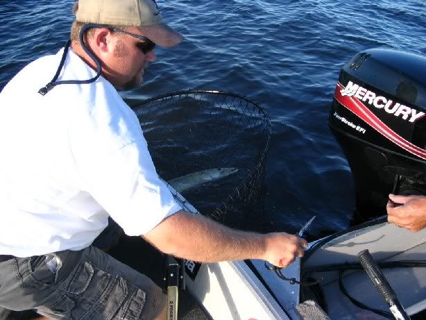 We missed Saskie's musky, but we did manage to get over in time to see Salmon hard at work. Nice fish buddy.